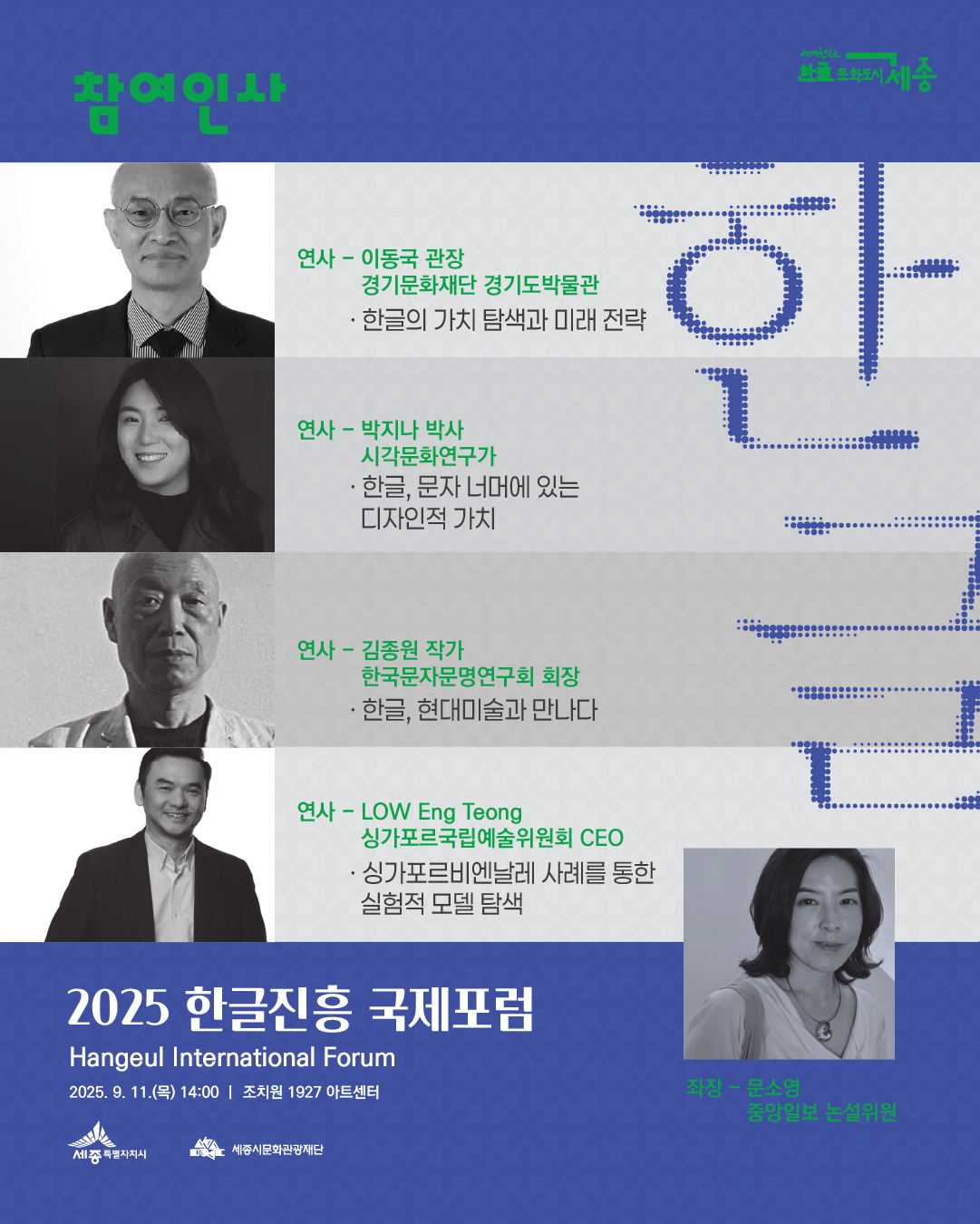 [학부] [세종시문화관광재단] 2025 한글진흥 국제교류 포럼 홍보(신청기간 9.10 18시마감)